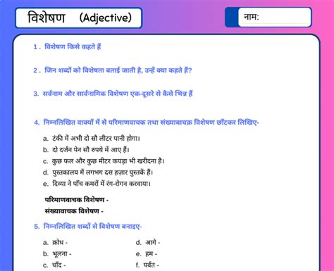 Visheshan adjective primary school classes 1,2,3.