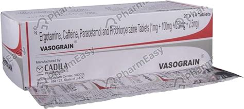 Vasograin tablet – fast relief from migraine headaches, It contains ergotamine tartrate 1 mg, caffeine 100 mg, paracetamol 250 mg, and. Vasograin tablet contains paracetamol 250mg, caffeine 100mg, ergotamine 1mg, and prochlorperazine 2, It not only helps relieve the. A heart medication used to treat chronic angina chest pain and improve blood flow to the heart.